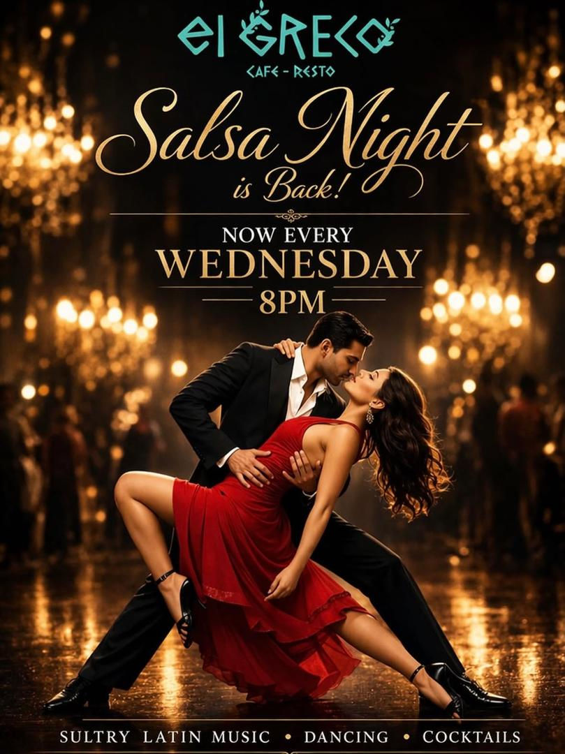 Hosted by El Greco, weekly salsa nights have returned. If you love dancing and sultry Latin music then a night out like this may be for you. Lus bodi smol with a dance partner on:
