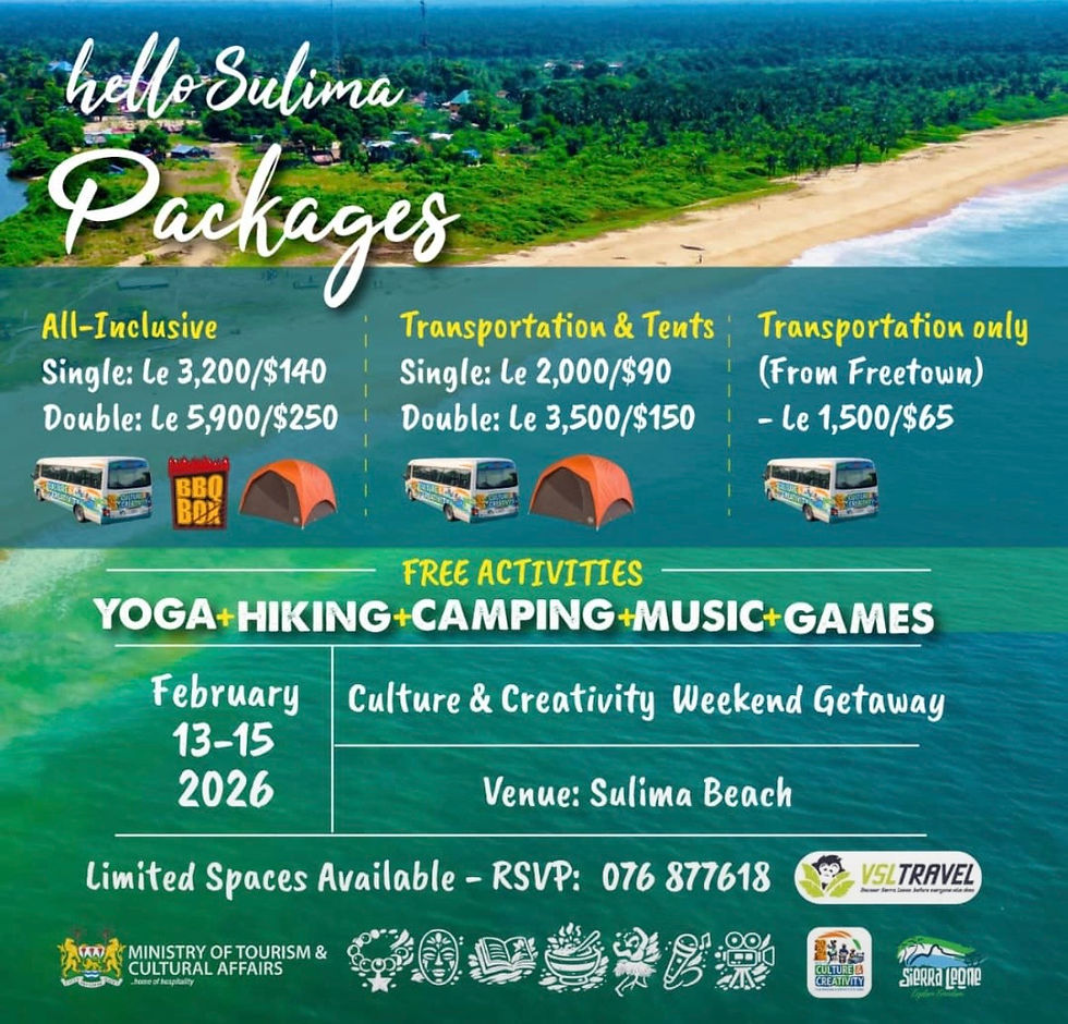 For reservations, contact +232 74 110 533 or +232 31 819 993.
